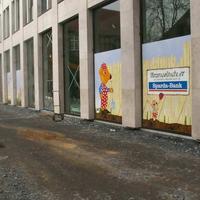Die Ballettschule Heidi Sievert hat in ihre neuen Räume die alten einfach mitgenommen. Und zwar in Form einer Raumfalte des Wiener Künstlers Herbert Hofer, der ein Foto der alten Räume auf ein Aluminium Blech gedruckt hat um es zu zerknittern und an die Wand zu hängen.